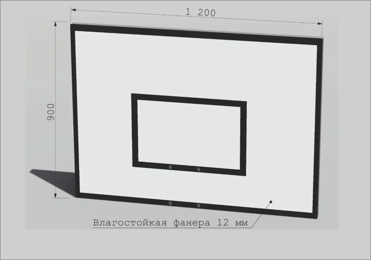 <p>Влагостойкая фанера толщиной 12 мм, отверстия для крепления кольца баскетбольного: 100 мм (Ш) * 110 мм (В). Покраска – резиновая краска. Цвет разметки – черный.</p>