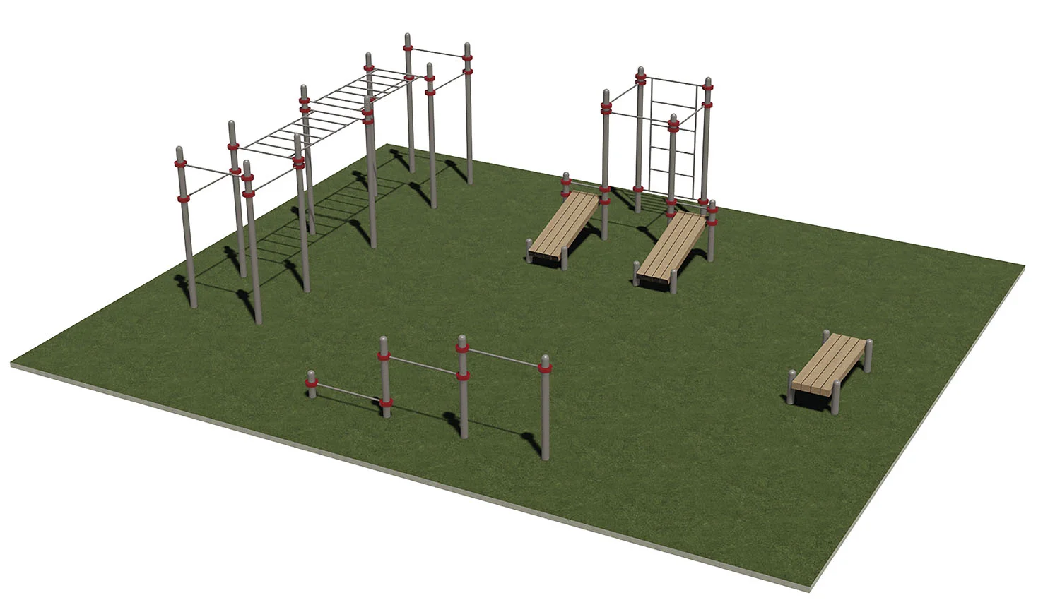 - Размеры и Компактность: Площадка имеет размер 12 м х 11 м, что позволяет удобно разместить тренажеры и создать комфортное пространство для тренировок.
