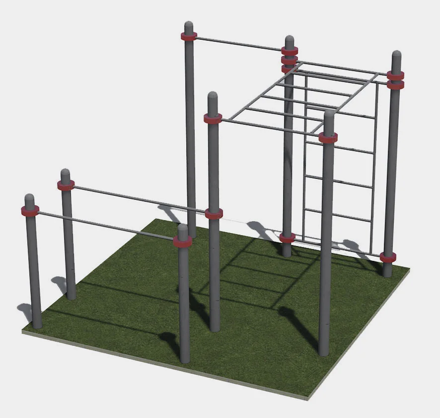 Спортивный комплекс, состоящий из турника, брусьев, рукохода и шведской стенки идеально подойдет для установки на территории школы, парка или дворов рядом с жилыми комплексами. Комплекс продуман так, чтобы пользователи могли тренировать все группы мышц не выходя за пределы своего двора. Также конструкция безопасна для детей любого возраста, которые смогут тренировать выносливость и силу.