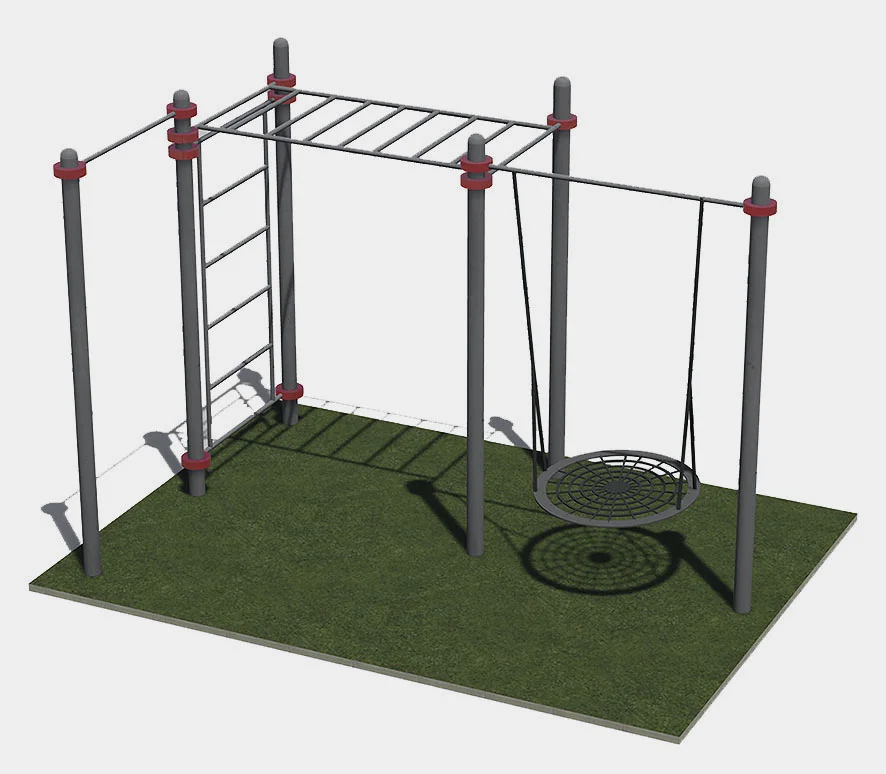 Универсальный комплекс подойдет для любых физических упражнений, а также благодаря качеле, даже самым юным пользователям будет интересно воспользоваться спортивным комплексом. Из-за прочной конструкции, комплекс позволяет выполнять различные упражнения, включая подтягивания и тренировки с собственным весом. Идеально подходит для школьных спортивных площадок, дворов и парков.