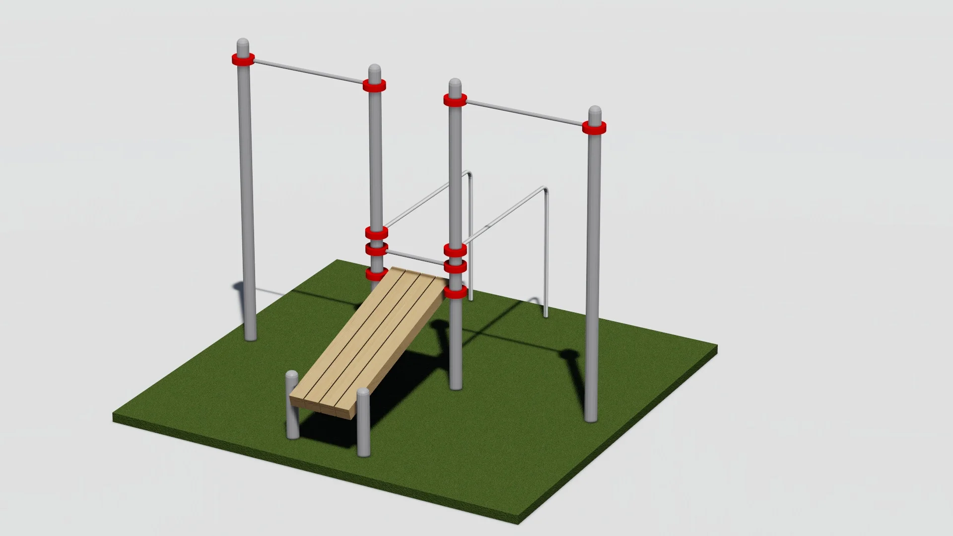 Наш уличный фитнес-комплекс предоставляет вам возможность разнообразить свои тренировки и развивать различные группы мышц. Комплекс включает в себя: