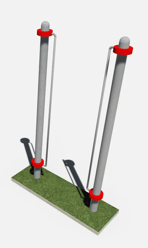 Поручни состоят из 2-х вертикальных столбов и 2-х поручней, располагаются параллельно друг другу. Расстояние между внутренними поверхностями поручней 766 мм. Высота столбов 2300 мм, длина каждого поручня 1898 мм. Поручни крепятся при помощи хомутов.